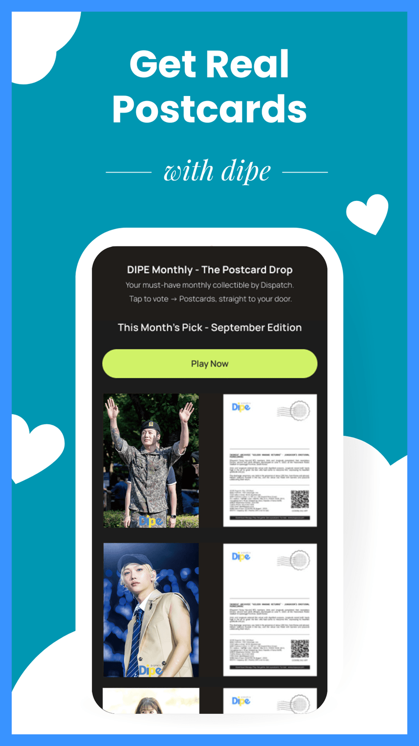 - Yes! Through dipe Monthly, fans receive real k-pop postcards delivered to their mailbox. It's our way of bringing online memories offline.